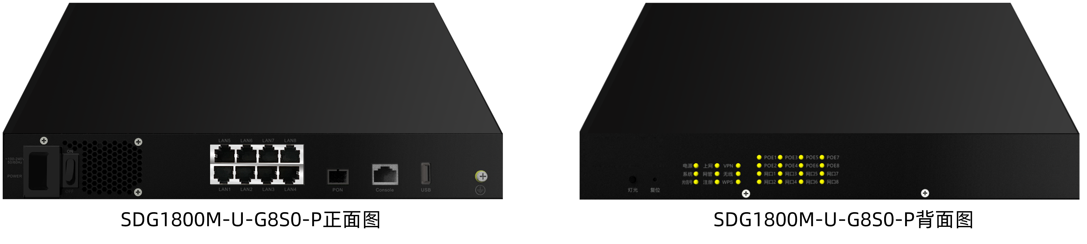 SDG1800M-U-G8S0-P 是支持PON上行,千兆 LAN 口 PoE 供电的网关产品。产品支持 IEEE 802.3af(15W)以及 IEEE 802.3at(30W) 标准的 POE 供电模式,并支持 6KV 防雷。适用于监控部署、WiFi 覆盖、办公室网络拓展等场景。